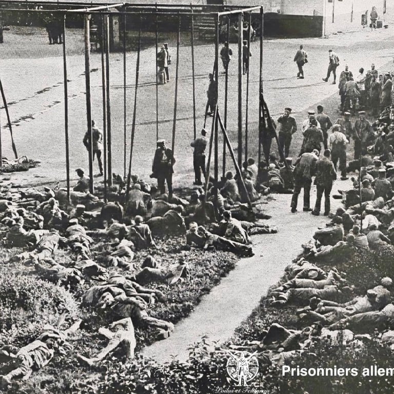 Les effets de la résistance belge se font sentir. Dès le 10 août, des milliers de prisonniers allemands peuplent les casernes de Bruges. A la caserne Apostoline, on les voit, écrasé de fatigue dans la cour.