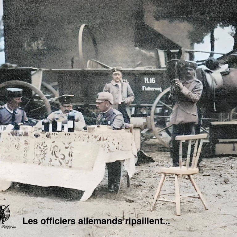 A Visé, des officiers allemands dégustent en plein air les vins fins réquisitionnés...ou plutôt volés.