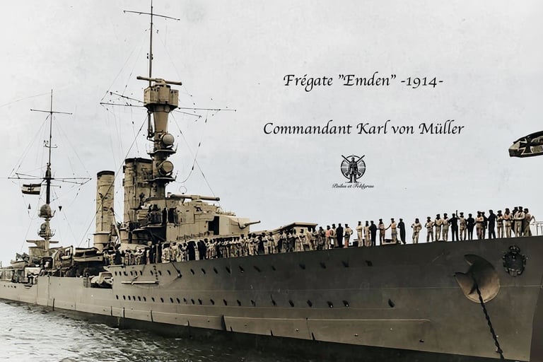 Le capitaine Karl von Müller, commandant du croiseur SMS Emden, fut fait prisonnier après la défaite de son navire face au croiseur australien HMAS Sydney, puis échoué lors de la bataille de Cocos, le 9 novembre 1914. Il resta prisonnier de guerre jusqu'à la fin du conflit. Son père était un colonel à la retraite de l'armée prussienne.