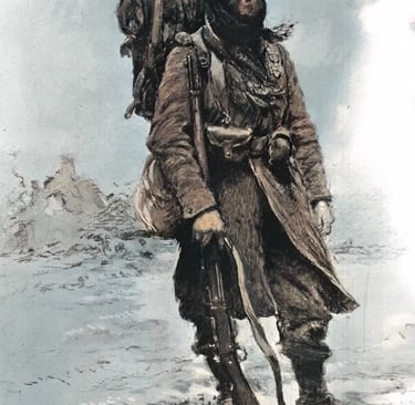 Tel était le soldat de la Première Guerre Mondiale décrit par Victor Giraud, universitaire et critique littéraire français. En face du "peuple des pionniers", célébré avec orgueil par les journaux d'outre-Rhin, le peuple des charges à l'arme blanche, dans les boues glacées, sous les frimas, eut à coeur de rivaliser de patience et de courage avec ceux qui avaient sans doute mis son impatience parmi leurs chances de succès. A l'aube grise de l'hiver de 1915, on ne lit au coeur de nos soldats qu'une foi ardente et presque religieuse en la victoire future comme en la sainteté morale de notre cause.