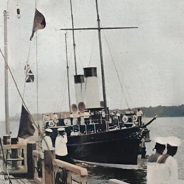 Le Tsar avait auprès de lui M. Sazonof et l'amiral Gregorovitch, ministre de la Marine. Le yacht impérial fit route aussitôt sur Peterhof, où le débarquement eut lieu à la place même où naguère étaient descendus Félix Faure et après lui, M. Loubet.