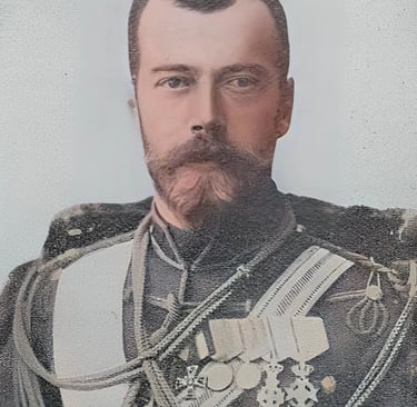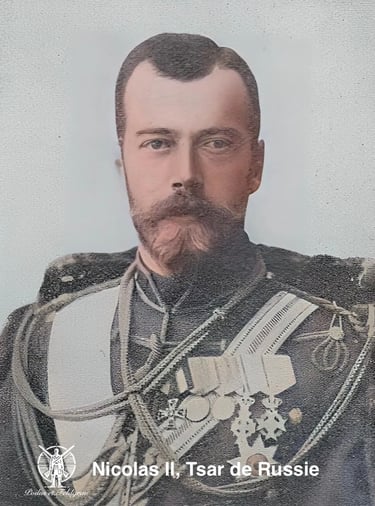 Empereur et souverain de toutes les Russies, Tsar de Moscou, Kiev, Novgorod, etc, Seigneur du Turkistan, héritier de la Norvège, Duc de Schleswig-Holstein, Dithmarschen et Oldenburg, etc, Nicolas Alexandrowitsch est né le 6 mai 1868 à ST. Petersburg (Petrograd), fils aîné de l'empereur Alexandre III de Russie et de sa compagne, la princesse Dagmar de Danemark, et a succédé à son père sur le trône le 1er novembre 1894.