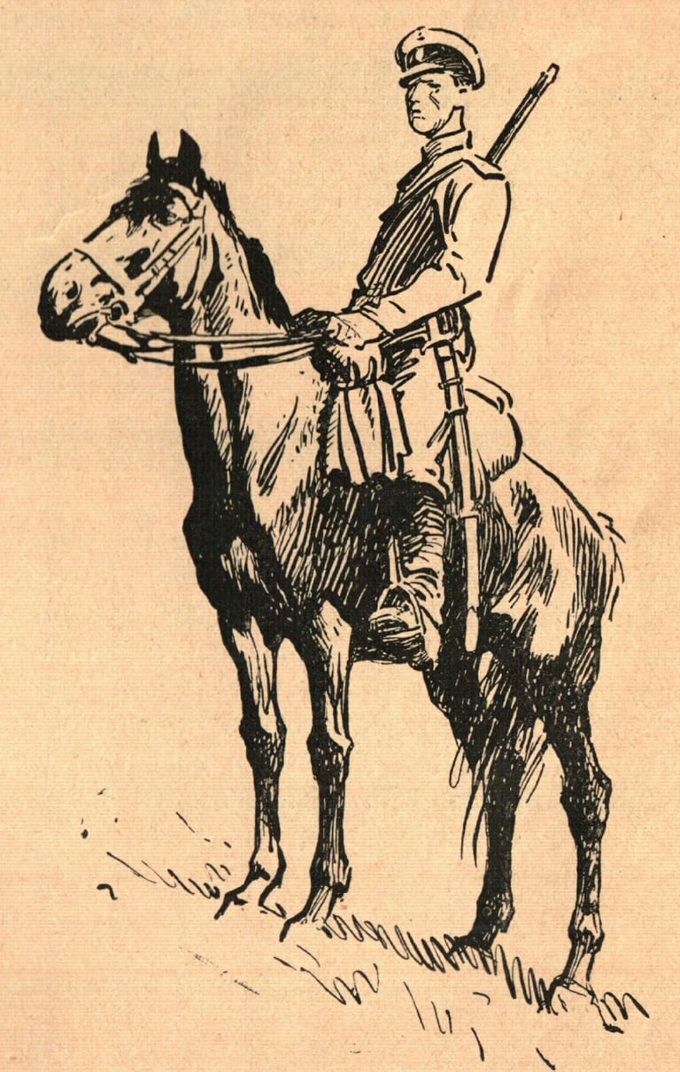 Il existe d'ailleurs des Cosaques à pied, notamment au Kouban, et ce sont précisément eux qui sont loués pour leurs remarquables qualités martiales. Les Cosaques montés, outre la carabine, portent généralement une très longue lance sans drapeau ; en revanche, les Cosaques du Caucase portent le grand poignard circassien (kinyal). Ils montent sans éperons et stimulent leurs maigres chevaux, seulement bridés, avec un fouet à manche court, la nagaika, qu'ils utilisent également très bien à d'autres fins et qui a donc souvent joué un rôle désastreux lors des soulèvements populaires en Russie « sainte ». Une « sotnia » (escadron) de Cosaques ne fait certes pas une impression particulièrement éclatante ni digne d'un défilé, ce qui s'explique aisément lorsqu'on apprend qu'ils doivent s'équiper et même fournir leurs propres chevaux. En échange, ils reçoivent des terres pour s'installer aux frontières du vaste empire, qu'ils sont tenus de défendre contre les invasions étrangères. Mais comme ils ne vivent plus là-bas en luttes incessantes avec des tribus de bandits semi-sauvages, mais qu'ils sont de plus en plus devenus des paysans rusés, ils ont perdu une grande partie de leur ancien esprit guerrier et n'ont répondu à l'appel du drapeau que par nécessité et sans enthousiasme particulier.