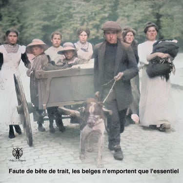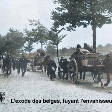 Dès le début de la guerre, des milliers de Belges fuient leur pays et prennent la route vers la France, n'empotant que ce qu'ils pensaient leur être utile. C'est l'exode.